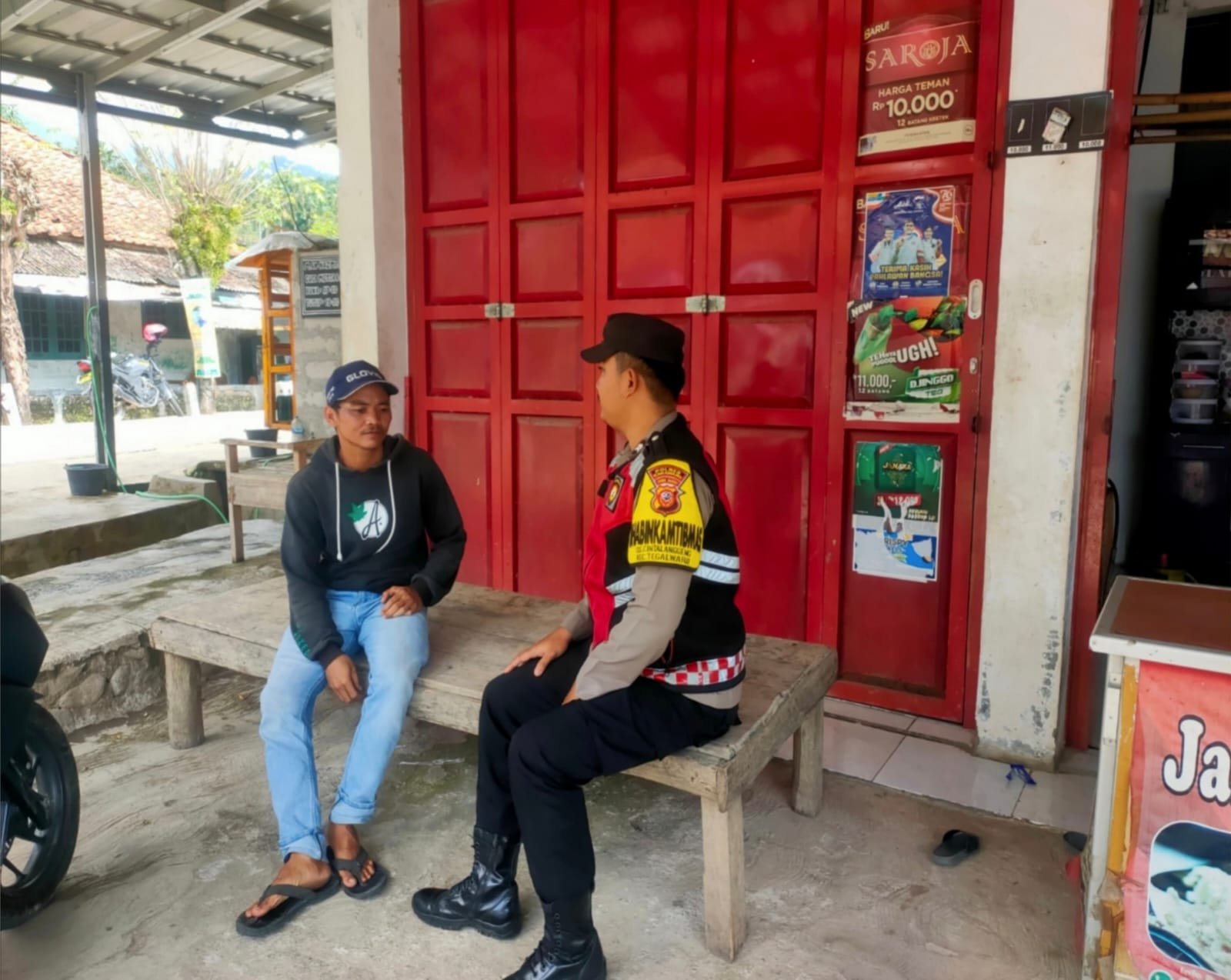 Sambang warga yang tengah melaksanakan edukasi mereka agar waspada baik potensi bencana maupun aksi kejahatan.