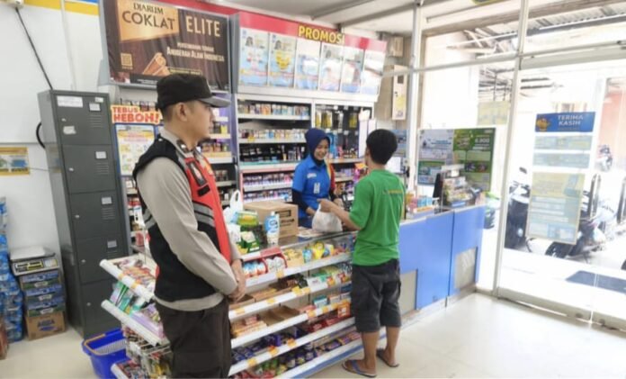Personil Polsek Tegalwaru Gelar Patroli Siang Monitoring Minimarket Loji Kidul di Desa Cintalaksana