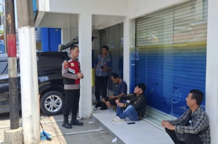 Personil Polsek Tegalwaru melaksanakan pengaturan lalu lintas juga edukasi petugas parkir di kantor Bank BJB Loji yang berada di Desa Cintalaksana agar waspada.