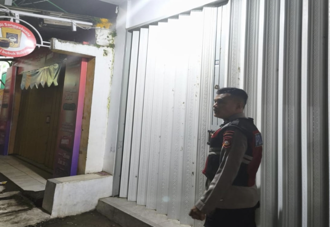 Personil Polsek Tegalwaru Patroli Malam Periksa Keamanan Pertokoan di Wilayah Desa Cintalaksana
