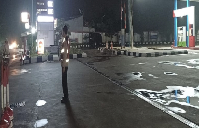 Personil Polsek Tegalwaru Giat Patroli Malam Monitoring Pekat di Depan SPBU Munjul Loji