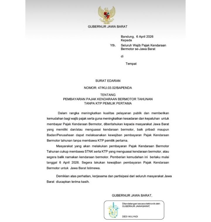 Gubernur Jawa Barat, Dedi Mulyadi, merespons cepat dengan menerbitkan Surat Edaran Nomor: 47/KU.03.02/BAPENDA yang mengatur pembayaran pajak kendaraan tanpa KTP pemilik awal.