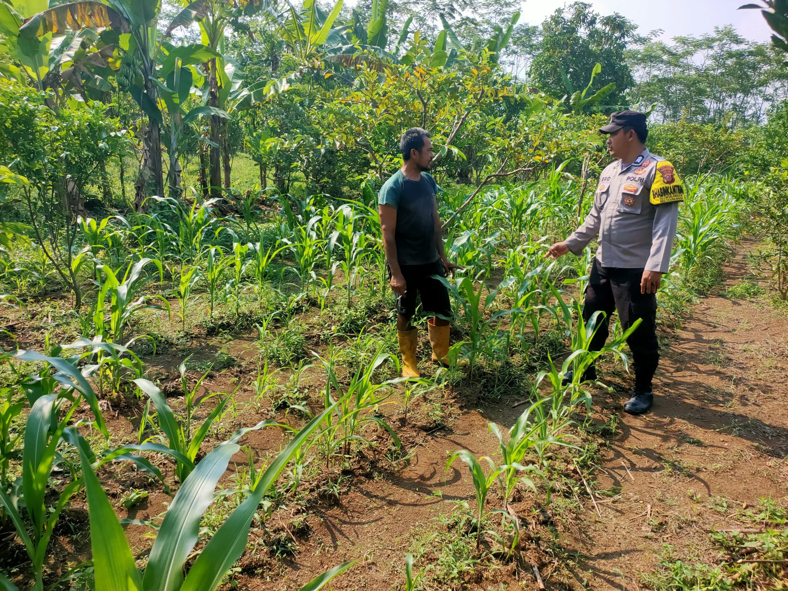Seperti yang berlangsung pada, Kamis (16/4) kemarin, Personil Polsek Tegalwaru,meninjau perkembangan pohon jagung di wilayah Tegal Pepentul Desa Cintalanggeng.