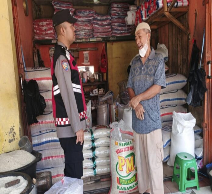 Personil Polsek Tegalwaru Patroli Siang Sambang Toko dan Kios Loji Kulon dan Edukasi Warga Agar Waspada