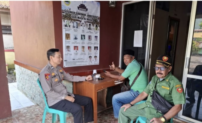Personil Polsek Tegalwaru sambang warga pada siang hari sambil ngobrol santai atau ngawangkong.